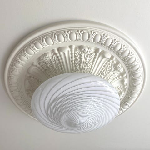 Sælger en virkelig flot vintage Murano væg-/plafondlampe i hvidt swirl glas.
