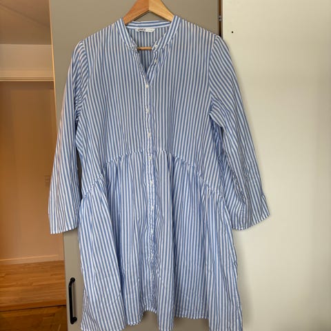 Sælger denne smukke langærmede kjole fra ONLY i en fantastisk klar blå farve. Kjolen har et diskret, ternet strukturmønster i stoffet, som giver den et eksklusivt look.