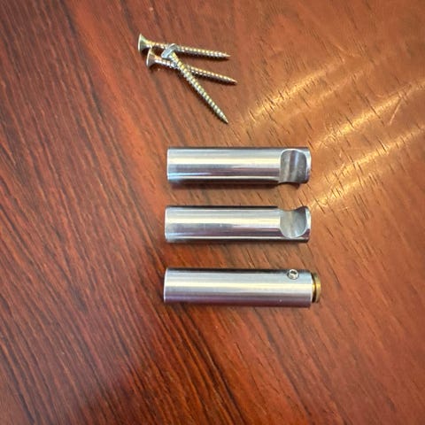 Sælger 4 stk. elegante Vola T17 håndklædekroge i klassisk, tidløst dansk design. Krogene er både stilrene og funktionelle og passer perfekt til moderne badeværelse – men kan også sagtens bruges i køkken eller bryggers.