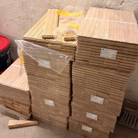 I alt 21 m2 god kvalitet sildebens parket massivt eg