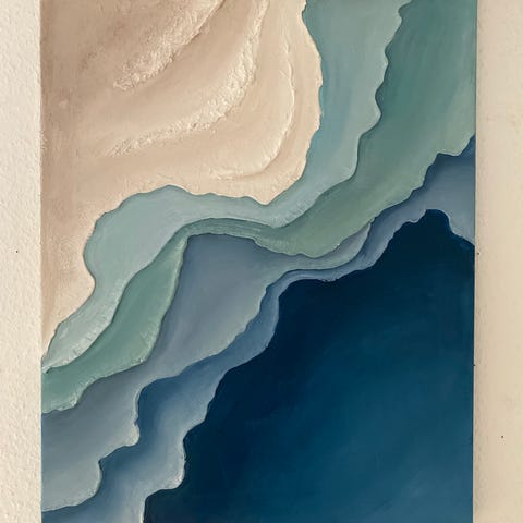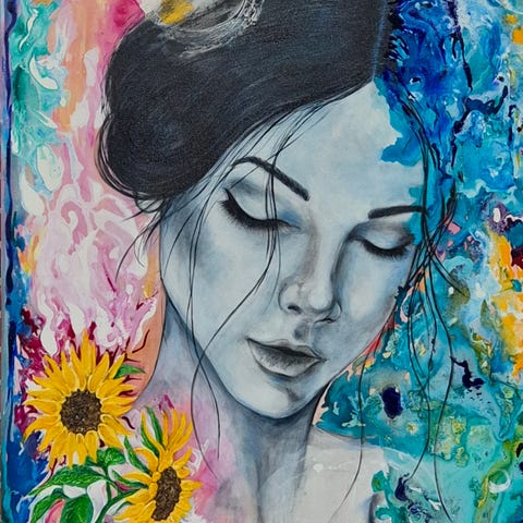 stort maleri på 110 x 90 cm. Bella Husted er uddannet på Det Fynske Kunstakademi.