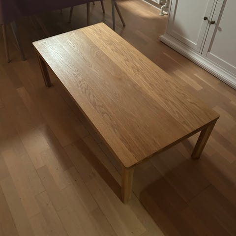 Bordplade og hylde i egetræs finer og ben i massiv egetræ