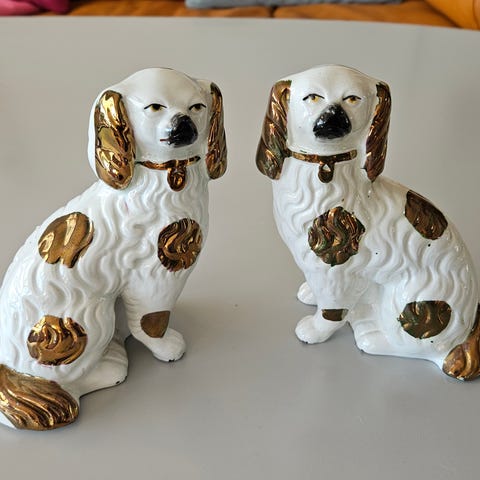 Engelsk fajance, Staffordshire, sælges gerne samlet alle 4 til pris 1000,- kr, parvis de små til 450,-kr og de store 650,-kr.