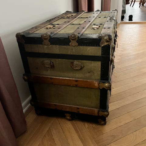 Stor sort kuffert med ruminddeling som sofabord