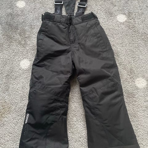 Graffiti skibukser til børn i str. 98 eller til 3 år. Bukserne er rosa med sorte forstærkninger nederst ved benene. De har justerbare seler med Graffiti-logo, elastik i taljen samt lukning med knapper og lynlås foran.