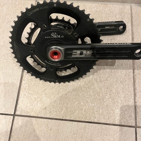 Monteret med Rotor NoQ klinger i 55/42. Ideel til enkeltstartscykel eller e-cykling setup. Klinger og powermeter har kun kørt indenfor på e-cykling setup.