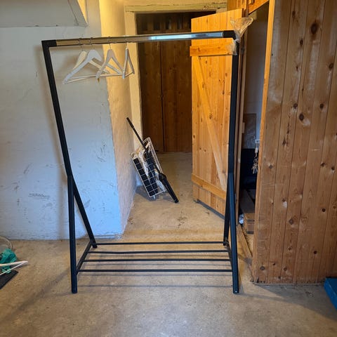 Robust tøjstativ designet til opbevaring og organisering af tøj. Praktisk med flere stænger til ophængning af tøj.