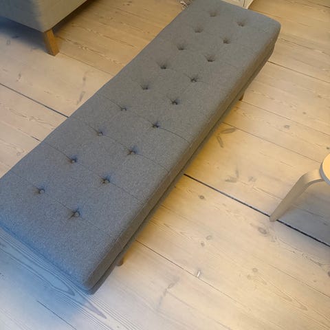 Sofacompany bænk rosa stof med sorte metalben