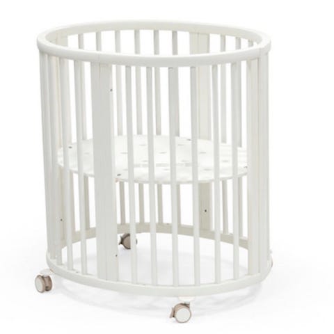 Stokke Snoozi i sandy beige. Let og stabil vugge. Perfekt til at tage den vante soveplads med, hvis man skal overnatte ude.