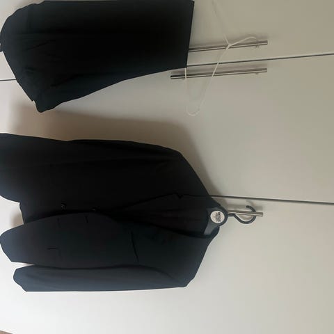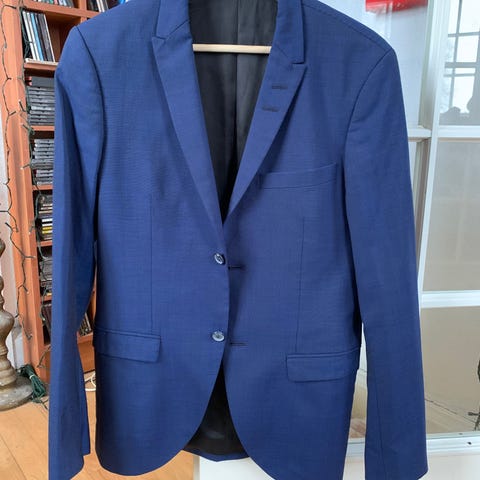 Bemærk: Én knap (næstøverst) mangler – kan nemt erstattes hos skrædder eller med matchende knap. Ellers fremstår jakken i pæn stand.