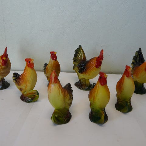 3 ÆLDRE HØNS I LAKERET TRÆ