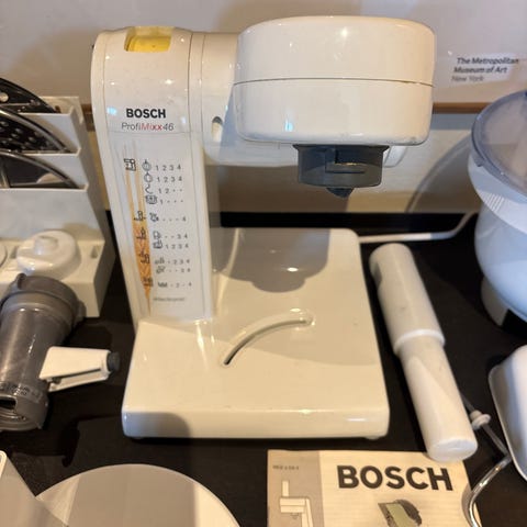 Køkkenmaskine, 1000 W, med konditorsæt, grøntsagssnitter, mikser og tilbehørsholder.
