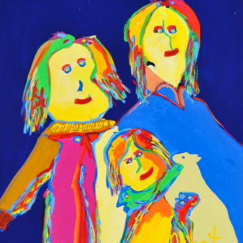 Peder Meinert født 1951 cd. Akryl på lærred. Komposition. "Mit hjerte brænder for Afrika" Sign. Meinert. Mål: 80 x 70 cm