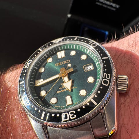 Et virkelig smukt ur med grøn skive og grøn keramisk drejeskive. Safirglas og super Luminova.