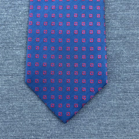 PPAU slips til mand i blå nuancer med grafisk mønster. Slips i klassisk længde og standardbredde, velegnet til skjorte og jakkesæt. Farverne består af forskellige blå og turkise toner med geometriske felter. Materialet fremstår glat og vævet. Egnet til brug ved både formelle og mere uformelle lejligheder.