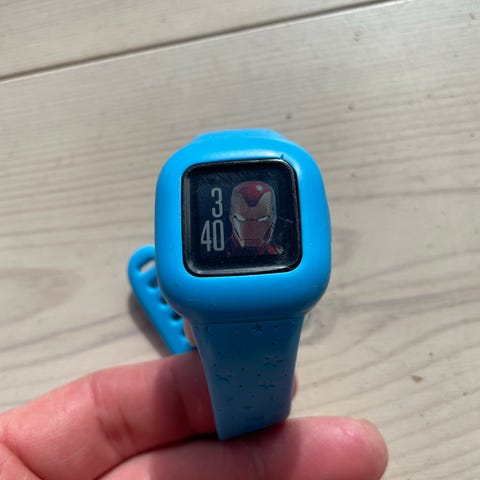 Sælger dette fede Garmin Vivofit Jr. Marvel‑ur, perfekt til børn der elsker superhelte. Uret fungerer som det skal og er klar til en ny lille helt.