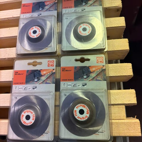 Fein Multimaster tilbehør med forskellige slibeskiver og klinger til multiværktøj. Pakkerne indeholder runde slibeskiver og trekantede slibepuder ,der passer til Fein Multimaster systemet. Egnede til slibe- og i forbindelse med gør-det-selv arbejde og professionel brug, hvor der kræves præcis bearbejdning af materialer som træ, metal eller plast afhængigt af den enkelte skive.
