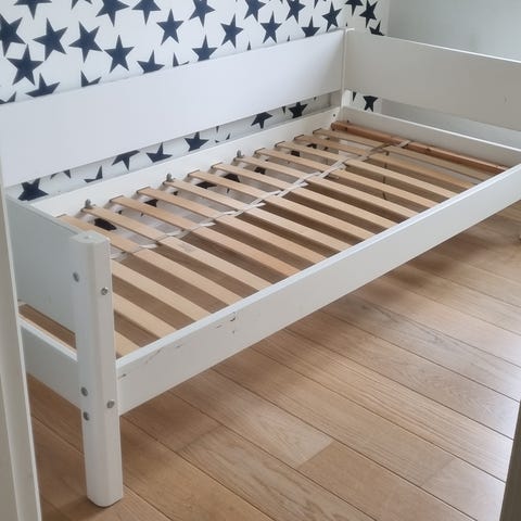 Ikke sengen, men tilbehøret til halvhøjde.
