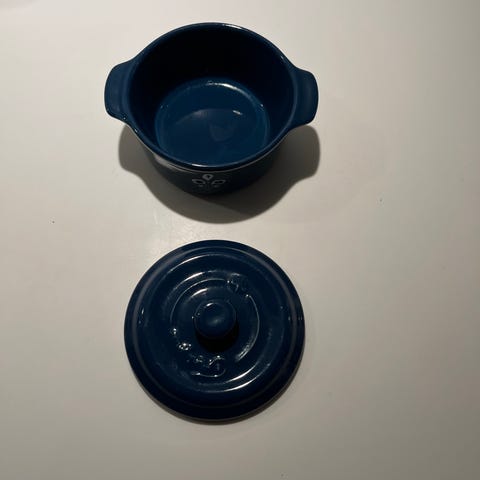 12 stk mini keramik cocotte gryder m. Låg i mørkeblå fra franske Fontignac. De fleste nye. 4 er brugt 1 gang.