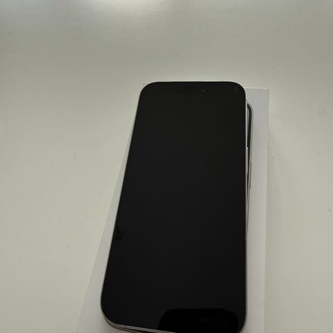 Apple iPhone 15 Pro smartphone med 256 GB intern hukommelse. Modellen har stor skærm med frontkamera i skærmens øverste del og tredobbelt kamera på bagsiden. Telefonen ses i en lys/hvid farve med metalramme. Velegnet til generel brug, apps, streaming, foto og video med god lagerplads til filer og medier.