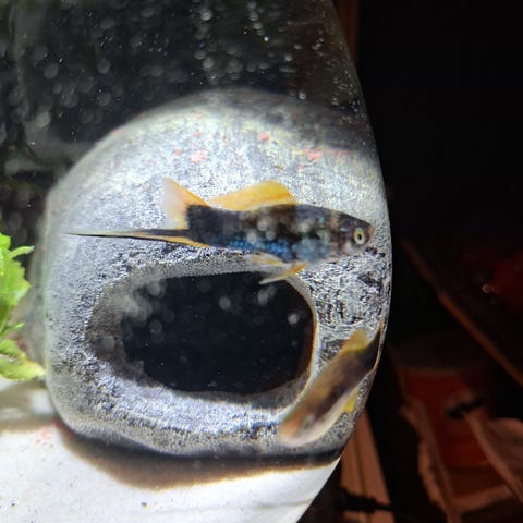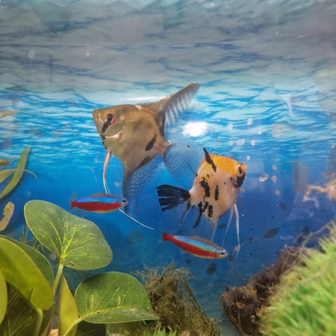 Skalar akvariefisk i orange farve. Fisken egner sig til ferskvandsakvarium og trives typisk i selskabsakvarier med passende vandkvalitet og skjulesteder. Arten er kendt for sin trekantede kropsform og lange finner.