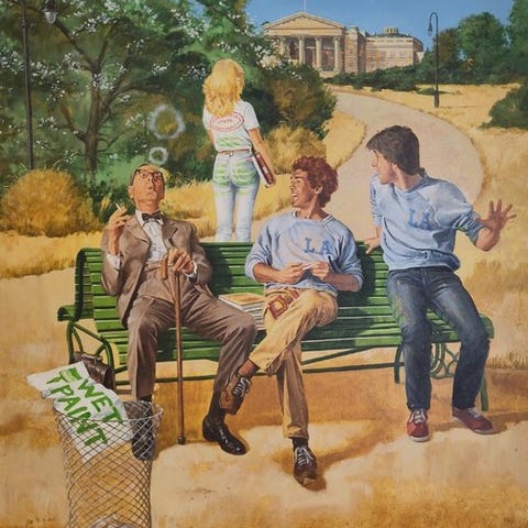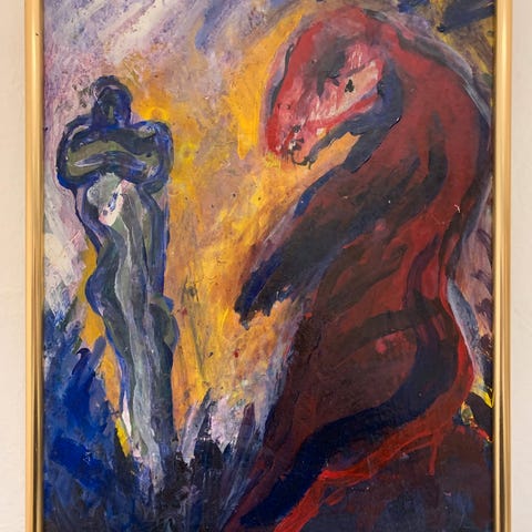 Barry WILMONT (1936) herboende canadier.Maleri samt collage.Signeret og dateret 1982. Indrammet smukt bag glas. Perfekt stand .Måler 58+75 cm med ramme.