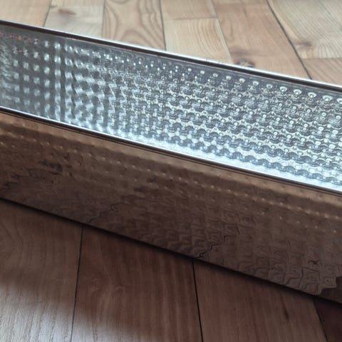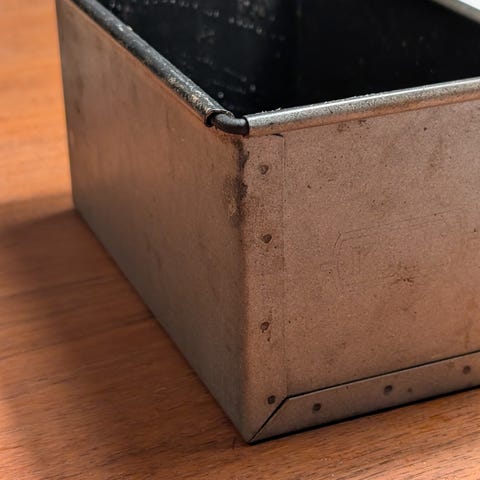 Kokkens køkkengrej rugbrødsform. Brugt 1 gang. Har lidt ridser fra afvaskning udvendigt. Sælges da vi skulle bruge en større.