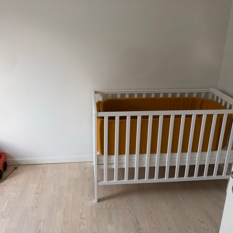 Den ene side kan let køres op og ned, ligesom bunden kan sættes i flere niveauer alt efter barnets størrelse.