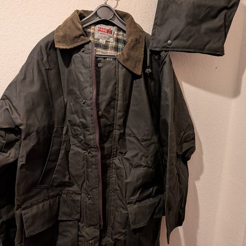 R.M. Williams oilskin vest i brun bomuld i størrelse XXL. Vesten er fremstillet i 100 % bomuld med oilskin-behandling og har høj krave samt gennemgående lynlås foran. Foran er der to store lommer med klap og trykknapper. I siden er der justerbare stropper med spænder, så pasformen kan tilpasses. Velegnet som yderlag til udendørsbrug og arbejde i skiftende vejrforhold.