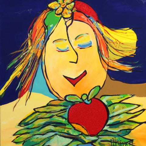 Peder Meinert født 1951 cd. Akryl på lærred. Komposition. "Mit hjerte brænder for Afrika" Sign. Meinert. Mål: 64 x 55 cm