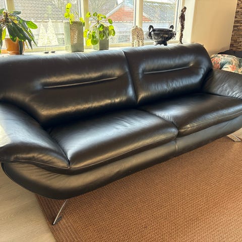 3 personer sofa. Sort læder overalt. Ikke ryger hjem. Stort set aldrig brugt. Købt som ekstra sofa i 2019. Kvittering haves. Bud frabedes og besvares ikke. Som i link: Hjort Knudsen - Grenoble 3 pers. - læder | Møbelringen https://share.google/4DD5BGOrevgBUuh80