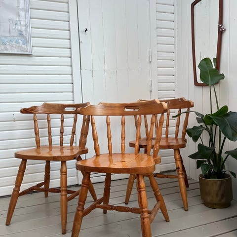 To Spisebordsstole af fyrtræ, som den der er vist på biillede ,købes