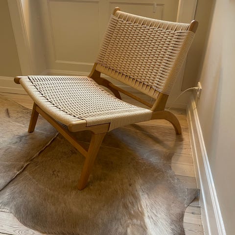 Mål: Fodskammel: H 43 x Ø 59 cm. Lænestol: L 75 x H 75,5 x B/D 75 cm.