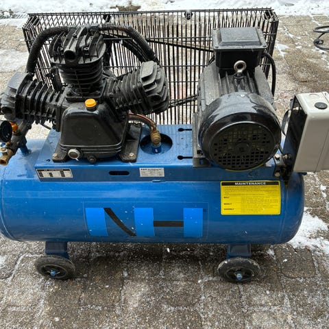 Nardi benzin kompressor. Den kører fint og laver meget luft i forhold til dens størrelse.