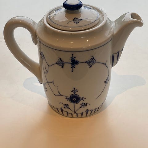 Sjælden bordskåner til te eller kaffekande, blåmalet fra B & G. God stand uden afslag eller revner. Kan sendes, men ikke "Fiks Færdig".