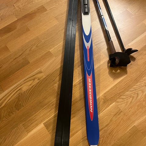 Sættet består af et par Madshus langrendsski 180 cm med matchende langrendsstøvler størrelse 41.