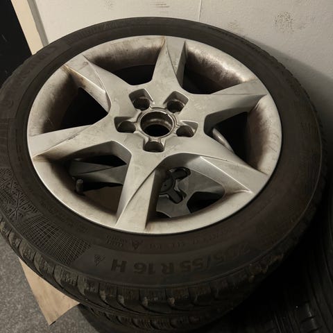 4. Stk alufælge med vinterdæk 215.60.16. 2 stk 6 mm. 2 stk 4 mm. Fint alufælge. Sad på en vw passat. Århus. Evt har også 4 stk. løser sommerdæk 205.55.16. Til. Til 350kr.