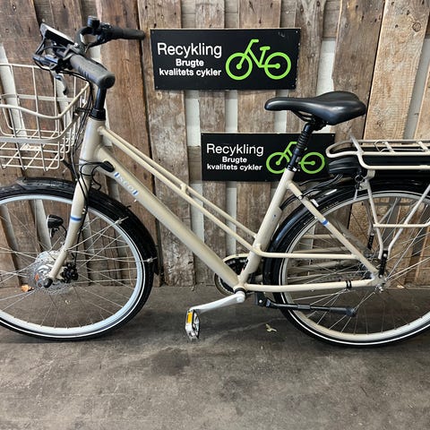 God, velkørende og velholdt cykel, som næsten er som ny, med 7 indvendige Shimano gear, Bosch center motor, 58 cm./XL alu. stel, justerbar frempind, hydrauliske fælgbremser, lygter, lukket kædekasse, affjedring i forgaffel, bagagebærer og 12 mdr. garanti, samt 24 mdr. garanti på batteri og oplader. Cyklen er nyserviceret og har fået nyrenoveret batteri, ny oplader, nye læderhåndtag, nye bremseklodser, nye pedaler, ny støttefod, 2 nye punkterhæmmende dæk, ny forreste klinge, ny kæde, ny kæde og nyt gearkabel.