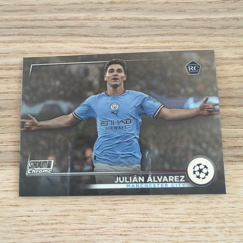 Topps John Stones /75 Manchester City autograf fodboldkort fra sæsonen 2025/26. Kortet viser John Stones i Manchester City-trøje på forsiden med trykt autograffelt. Bagsiden angiver, at der er tale om et Base Players Autograph Variation Card fra Topps Premier League 2025/26-serien. Kortet leveres i plastlomme/holder som vist på billederne.