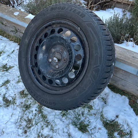 Fire hjul med Continental vinterdæk til salg. To dæk er i god stand, to er desværre slidte.