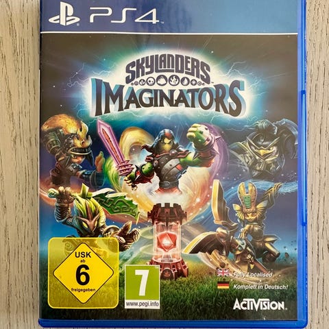 Activision Skylanders Imaginators PlayStation 4 spil. Fysisk udgave på Blu-ray disk i original PS4-plastcover. Spillet tilhører Skylanders-serien og kræver kompatibel portal og figurer for fuld funktionalitet. PEGI 7 og USK 6 aldersmærkning. Understøtter 1 spiller lokalt (samt lokal co-op, hvor understøttet af spillet) på PlayStation 4-konsol.