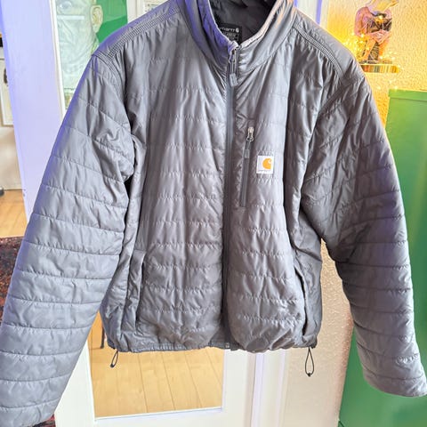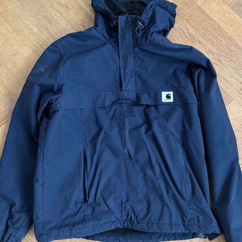 Carhartt jakke til herre i størrelse L. Jakken er blå og fremstillet i nylon. Modellen har lynlås foran ved halsen og elastik ved ærmeafslutningerne. Velegnet som yderlag til hverdagsbrug og udendørsaktiviteter.