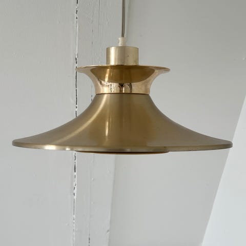 Flot hvid Retro lampe i metal med messingkant øverst.