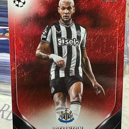Topps Anthony Elanga autograf fodboldkort i lilla parallel, nummereret 14/75. Kortet viser Anthony Elanga i Newcastle United trøje og er mærket som "Authentic Autograph Card" fra en Premier League-udgivelse. Kortet leveres i plastlomme/hardcase som beskyttelse.