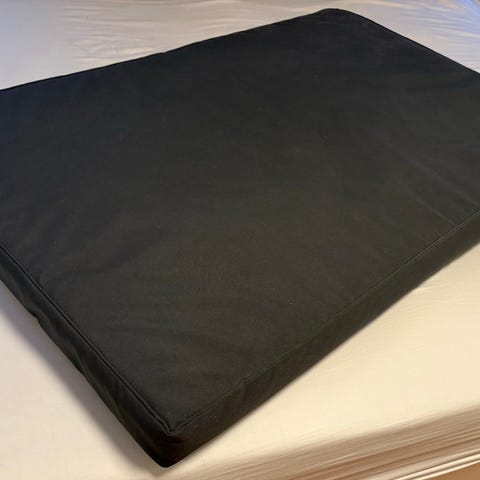Består af fire hele paller og to halve (i to lag), så sengen måler 120x200 cm. Højden er 29 cm eksklusivt madras.