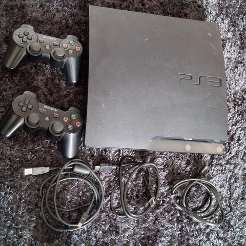 Sony Playstation 3 konsol. Konsollen er velegnet til spil, film og streaming og understøtter brug af trådløse controllere. Egnet til brug i stuen eller værelset til både spil og underholdning.