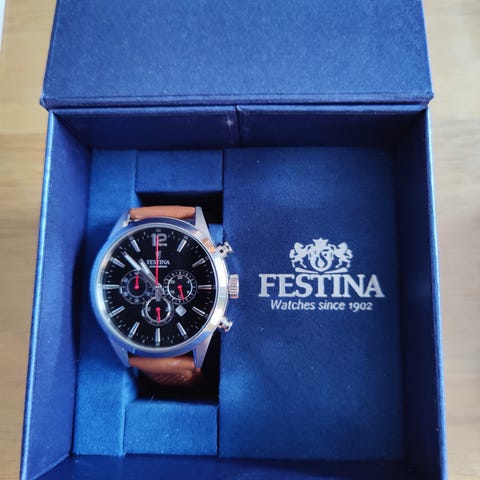 Festina Automatic Diver F20531/4 med safirglas og vandtæt til 200m. Stadig folie på uret. Kun købt for at bruge et gavekort. Kvittering og certifikat medfølger. Kan sendes for 45,-