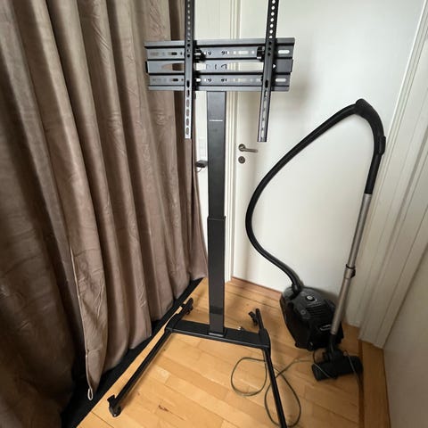 Gulvstativ til TV, kan stilles i højden og drejes.
