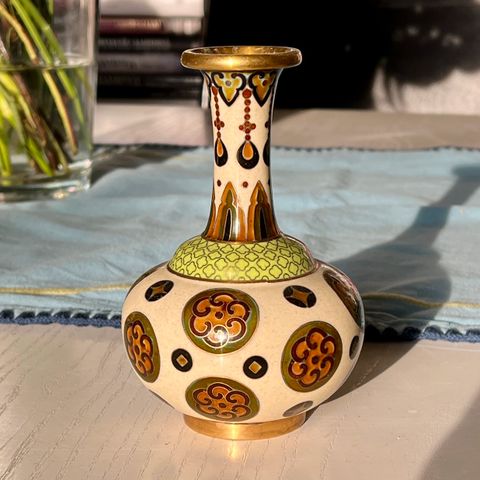 Keramik, Miniature vase, Keramik miniature vase med løbeglasur, lille glasurfejl. 7 cm høj og 5,5 cm i dia