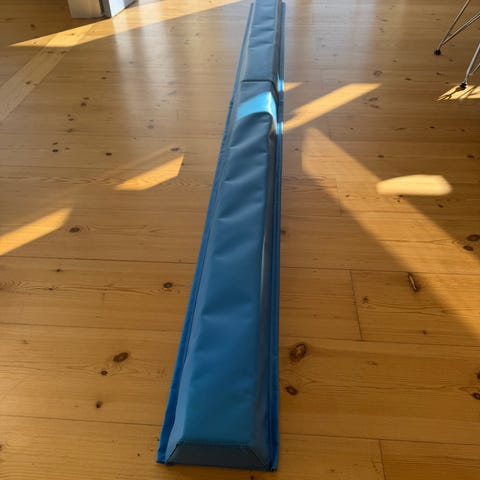 Kan sættes sammen på midten så man får en samlet bom på 4,8 meter. Holdes sammen med træstykke og velcro. 4 fødder medfølger.